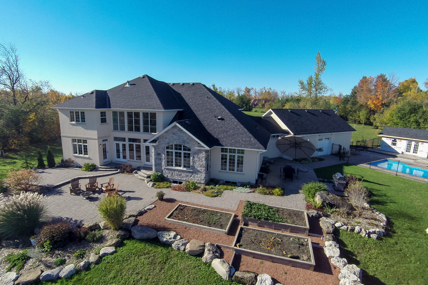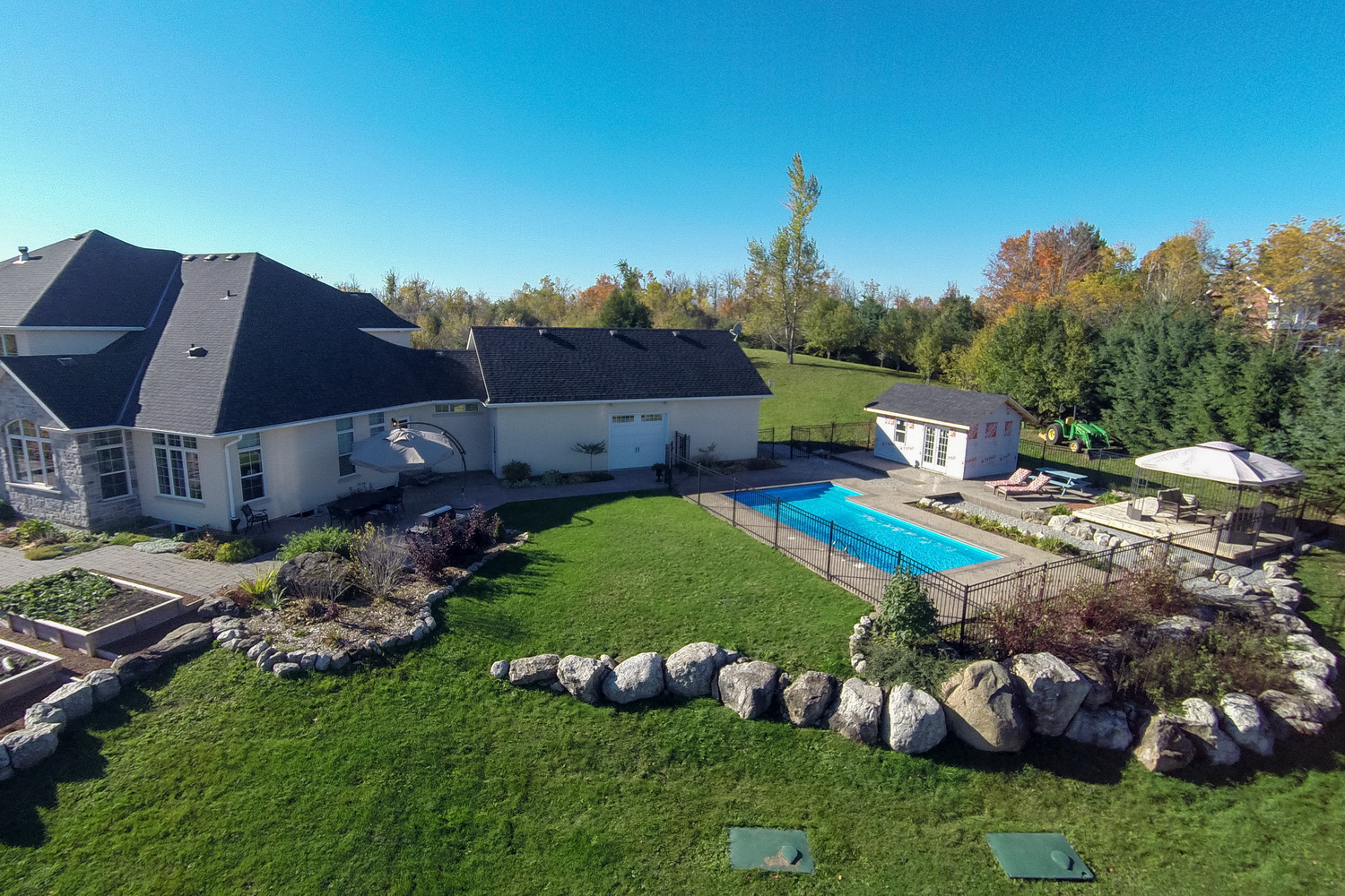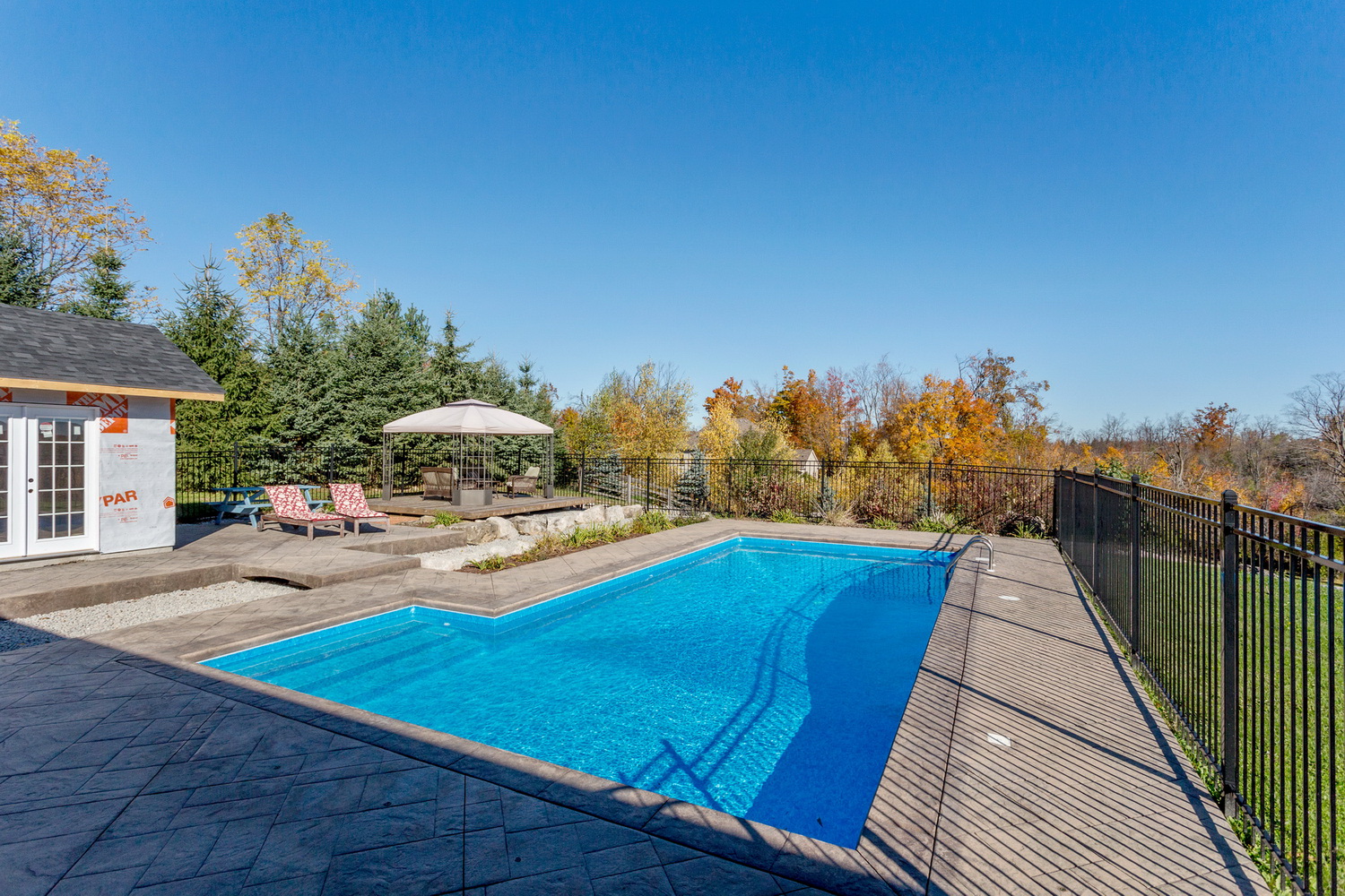 A sturdy 16’x16′ deck with screened gazebo overlooks the pool. A newly built 200 sq.ft. cabana finished with board and batten is ready to be completed on the inside. (Plumbing for a three-piece washroom, electrical supply, and a second conduit from the house for data cabling are in place.)