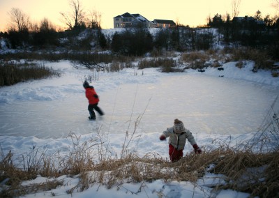 Summer affords endless opportunities to explore the outdoors. (Visit the Escarpment & Wildlife page.) Come winter, take advantage of your own pond for ice skating (be safe, please!) and your own hill for tobogganing. Grab your snowshoes or cross-country skis and hit the community trail that starts at the bottom of the property.
